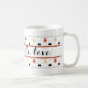 Rire, Sourire, Citation en direct est écrit en élégant script noir au centre des doubles lignes rayées Terra Cotta. Couleurs géométriques de la nature motif avec Terra Cotta, sable, pois noirs et rayures gris clair. Conception moderne et tendance de la cuisine. Conception originale © TamiraZDesigns.