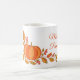 Tasse à café montrée avec un imprimé citrouille d'automne festif avec citrouille du matin. Customisez cet objet ou achetez tel quel. Image stock