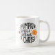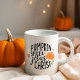 Cosy avec cette mignonne épice Citrouille et tasse à café Jésus-Christ qui comporte un citrouille, des feuilles et des accents de coeur dans les couleurs chaudes de la moisson.