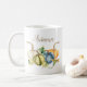 De beaux citrouilles d'aquarelle dans les tons bleu, vert, orange et blanc sont présentés sur cette tasse saisonnière. Vous pouvez customiser le mot Automne qui est de part et d'autre de la tasse. Dégustez vos invités et votre famille pour la chute et Thanksgiving avec cette tasse citrouille aquarelle.