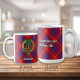 Clan Hamilton crête badge entouré d'une sangle et boucle sur l'arrière - plan tartan rouge. Texte personnalisé des deux côtés.