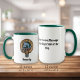 Clan Kennedy crête badge entouré d'une sangle et boucle sur l'arrière - plan tartan. Texte personnalisé des deux côtés.