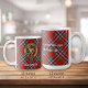 Clan MacFarlane écusson de crête entourée d'une sangle et boucle sur l'arrière - plan tartan rouge. Texte personnalisé des deux côtés.