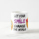 Laissez votre sourire Changer le monde, Conçu avec un design classique, cette tasse promet durabilité et plaisir quotidien pour votre café, thé, ou toute boisson chaude.
