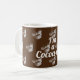 Une tasse marron chocolat recouverte d'un motif de guimauves. Il se targue d'un jeu de mots mignon pour les amateurs de chocolat chaud disant "Je suis un cacao-nut"