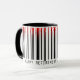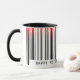Laser rouge sur code barre pour une retraite heureuse avec nom personnalisé. Le nom peut être modifié ou supprimé.