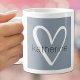 Mug Coeur blanc sur le Monogramme bleu Dusty