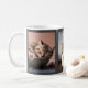 Trois photos de chats sur un collage sur une tasse photo grise avec espace pour le nom.