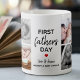 Célébrez cette première Fête des pères spéciale en style avec cette tasse de café de collage photo personnalisée. Personnalisable avec 8 de vos photos préférées, avec le mot "Père" griffé dans un script moderne tendance. Sans oublier le petit coeur rouge mignon qui peut être peint dans n'importe quelle couleur de votre choix, c'est un signe d'amour et de baisers, signé avec votre/vos nom(s). Adaptez le texte, la police et la couleur à votre goût, ce qui en fait un cadeau parfaitement personnalisé qui ne manquera pas de taper sur ses cordes.