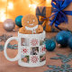 Collage photo et flocons de neige rouge tasse de café de Noël. Il présente un montage photo de onze 11 photos de famille et des flocons de neige rouges. Toutes les photos sauf une sont de Photographie © Storytree Studios, Stanford, CA
