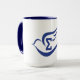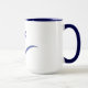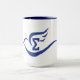 15oz. la tasse blanche avec l'équilibre bleu et la poignée avec le bleu ont plongé avec le sigma grec de lettre à l'intérieur.