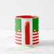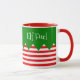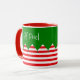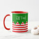 Cette mignonne tasse de style elfe avec des rayures rouges et blanches et un top style elfe est parfait pour Noël Matin!