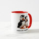 Célébrez l'inséparable couple avec cette tasse à deux tons, qui comporte une paire de macareux de macareux de macareux de l'Atlantique générée par l'IA. Personnalisez-vous avec un mème de votre propre, ou utilisez celui existant ("Nuthin' Like Snugglin' Puffins"). Reverse affiche un design identique. Un cadeau d'anniversaire pour la Saint-Valentin, un mariage ou un mariage! Design © W.H. Sim. Voir plus sur zazzle.com/word2art