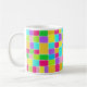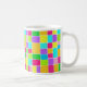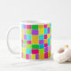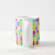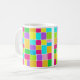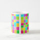 Une tasse à l'aquarelle numérique abstraite et colorée, composée de rectangles colorés peints de telle sorte qu'aucun des rectangles colorés ne touche, laissant une étroite bande de papier blanc. Le tableau a été créé avec Artrage Studio Pro qui donne un effet d'aquarelle très frais et réaliste dans de belles couleurs vives. Le motif est répété des deux côtés de la tasse.