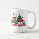 Une illustration éclatante présente une tasse de café ornée de paroles de vacances, à côté d'un arbre de Noël décoré et de cadeaux emballés. La scène joyeuse saisit l'esprit de la saison, invitant chaleur et joie pendant les festivités d'hiver.