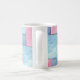 Une jolie tasse à café blanche avec patchwork de motif denim rose et bleu, d'une aquarelle peinte à la main par Judy Adamson.