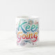 Un design vibrant et inspirant de tasse à feutre avec l'expression "Keep Going" entourée d'un design coloré et abstrait. La typographie audacieuse et les couleurs ludiques encouragent un état d'esprit positif et motivé.
