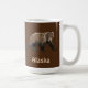 Une peinture numérique d'un ours Kodiak. Texte personnalisable, "Alaska" apparaît sous l'ours et vous pouvez votre propre texte supplémentaire à l'envers. L'Ours de Kodiak (Ursus arctos middendorffi), une sous-espèce de l'ours brun, ou grizzli, est le plus grand ours du monde. Un mâle adulte peut mesurer plus de 10 mètres de haut lorsqu'il est debout sur ses pattes postérieures et peser plus de 1500 livres - un spectacle à voir. Un ours du zoo de Bismarck, dans le Dakota du Nord, aurait pesé jusqu'à 2 400 livres. Les ours vivent sur les îles de l'archipel Kodiak de l'Alaska. Aujourd'hui, il y a environ 3500 ours kodiak et leur nombre augmente en raison de l'état généralement excellent de leur habitat, y compris un poing suffisant pour se nourrir. Ils sont appelés "takuka-aq" en Alutiiq, la langue maternelle du peuple dans cette région. On pense que les ours y ont été isolés depuis la fin de la dernière ère glaciaire, il y a plus de 12 000 ans. Bien qu'ils soient le plus grand carnivore terrestre leur régime alimentaire comprend de grandes quantités d'herbe, d'autres plantes et des baies. Aujourd'hui, il y a environ 3500 ours kodiak et leur nombre augmente en raison de l'état généralement excellent de leur habitat, y compris un nombre suffisant de poissons à manger. En raison de l'abondance des ressources alimentaires, les ours Kodiak ont une aire de répartition plus petite que les autres ours bruns et n'ont pas besoin de défendre les territoires. Les Alutiiq chassaient les ours pour leur nourriture, leurs vêtements et leurs outils. Des flèches, des lances et beaucoup de courage étaient nécessaires pour la chasse. Les têtes d'ours étaient généralement laissées dans le champ comme un signe de respect de l'esprit des ours.