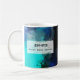 Une tasse personnalisée - avec un design abstrait amusant et moderne. Peindre des éclaboussures, des éclaboussures et des éclaboussures en bleu turquoise, blanc, orange et noir et bleu marine. Le texte dit : doit. avoir. café. Drôle.