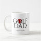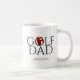 Tasse à café cool tendance avec en tête "GOLF DAD" de premier plan dans la typographie minimaliste et une silhouette de golfeur intégrée au centre du texte. Zones de texte personnalisables sous en-têtes. Idée cadeau parfaite pour votre golfeur préféré. Idéal pour Noël, Fête des Pères, anniversaire ou tout autre jour.
