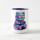 Entrez dans le monde dynamique du jeu avec cette illustration frappante d'un chat rayé bleu et rose, des lunettes de soleil rocailleuses et en tenant un contrôleur de jeu en toute confiance. Cette oeuvre ludique et branchée est parfaite pour les amateurs de jeux et d'arts numériques qui apprécient une touche rétro.