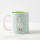 Un doux canard blanc agissant cool, dressé contre un arrière - plan bleu avec des points blancs. Un merveilleux cadeau pour les amateurs de canards ou pour tous ceux qui aiment les oiseaux, les animaux ou la nature.