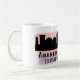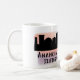 Tasse à café représentant la silhouette de la ligne d'horizon de la ville d'Anaheim en Californie avec éclaboussure d'aquarelle et coordonnées de latitude et de longitude