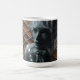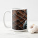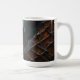 Artistic mug featuring a grayscale female portrait against a textured copper metal background symbolizing strength, beauty, and modern art.