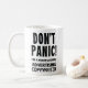 Cette délicieuse tasse blanche est accompagnée de l'expression "Ne paniquez pas ! Je suis un rédacteur publicitaire professionnel.' Il est parfait pour toute personne dans le domaine du marketing, que ce soit au bureau ou pour une occasion spéciale comme une promotion. Une excellente idée de cadeau d'équipe pour ceux qui conçoivent des messages captivants et ont besoin de leur solution de café tout en brainstorming.
