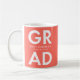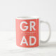 Tasse à café moderne graduation avec "Grad" en lettres blanches en gras avec un arrière - plan de corail ou couleur de votre choix. Personnalisez la tasse de graduation en ajoutant le nom et l'année de graduation du diplômé. La tasse à café est un cadeau de remise de diplômes très personnalisé pour les diplômés du secondaire et du collège!