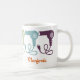 Cette tasse présente un enrobage autour de l'illustration de sèche-cheveux de style rétro ou sèche-cheveux en orange, jaune, vert sauge, bleu clair et violet profond. Cette tasse est prête à être personnalisée avec un nom ou un autre message. Ajoutez le même texte ou un texte différent de chaque côté de cette tasse en remplissant les champs modèles avec votre nom ou message court. Fait un grand cadeau pour les coiffeurs et les stylistes.