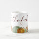 Coupe de café d'automne avec un beau décor citrouille et le texte "bonjour de chute".