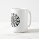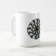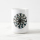 L'image montre un motif circulaire aux formes abstraites ressemblant à des figures fantômes en blanc aux accents noirs et marron, créant un effet kaléidoscopique.