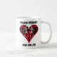 Cette tasse à café customisée a un couple de squelettes amoureux. Le coeur gothique qui plane derrière eux est un contraste saisissant avec leurs formes squelettiques, symbolisant la passion qui les lie à toute éternité.