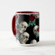 Le blanc grimaçant des crânes et les roses rouges avec le feuille vert sur un fond noir font à ceci une conception saisissante et unique.