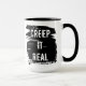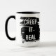 Amusante tasse à café Halloween avec un design de brosse noir audacieux et l'expression "Creep It Real." Un choix ludique pour les matinées de saison éffrayante, les cadeaux d'Halloween, ou les bureaux avec un sens de l'humour. Idéal pour le café, le thé ou le cacao chaud pendant les festivités d'octobre.