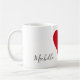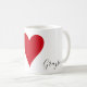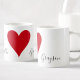 Create your personalized red heart love mug set with your custom names. When held together, these fun mugs make a heart, so they are perfect venin pour Valentine's day or anniversaries. Color of the heart can be customized to your liking.
