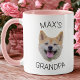 Upload a dog photo and personalize this custom mug for grandpa. A funny yet sentimental gift that celebrates family love in a unique way. (make sure to crop as much to the face as possible and use an app to remove the background)