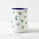 Unique custom mug for hummingbird lovers featuring several species of hummingbirds, such as a Broad-billed Hummingbird, a Fiery-throated Hummingbird, Golden-tailed Sapphire and Sapphire-bellied Hummingbirds, Mexican Violetear Hummingbirds, Coronet and Glittering Starfrontlet Hummingbirds. Images taken from original watercolor paintings by Christiane Dobbins.