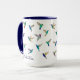 Unique custom mug for hummingbird lovers featuring several species of hummingbirds, such as a Fiery-throated Hummingbirds, Golden-tailed Sapphire and Sapphire-bellied Hummingbirds, Mexican Violetear Hummingbirds, Coronet and Glittering Starfrontlet Hummingbirds and an Anna's Hummingbird. Images taken from original watercolor paintings by Christiane Dobbins.