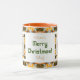Custom Jolly Automne Hiver Noël Motif Photo Tea Coffee Mug. Dans les couleurs automnales traditionnelles d'orange vif, de vert et de gris ; dans un joli motif géométrique multicolore et maximaliste. Pour des boissons chaudes en hiver et un chocolat chaud gai lors de nuits d'hiver agréables. Changez les deux photos en photos pour célébrer les souvenirs de famille. Modifiez le texte au milieu de votre salutation festive. Achetez comme un cadeau de table de gardien de fêtes pour elle, maman, maman, mère, ou même grand-mère.