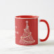 Enjoy your steaming hot coffee/tea in this pretty Christmas mug. Sparkling gold and white christmas tree on red background gives it a beautiful solive look. You can personalize it and write your or your loved one's name initials by clicking on the personalize this template button. You can change font color and style by clicking "Edit Using Design Tool" Perfect Christmas gift for your family and friends and you'll absoly want one for yourself.