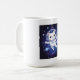 This adorable coffee mug features a cute kawaii astronaut cat floating through space, surrounded by stars and planets.