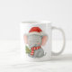 This adorable Christmas elephant features a sweet baby elephant wearing a Santa hat and a festive red scarf while holding a small Christmas tree. The soft watercolor style and warm holiday colors create a cheerful, cozy feeling perfect for Christmas-themed items. This cute festive character is great for holiday gifts, winter celebrations, and anyone who loves elephants and Christmas magic.