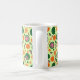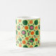 Cette mignonne tasse est ornée d'un motif de fruits coloré en tranches de pastèque et d'orange sur un arrière - plan vert clair.