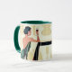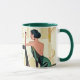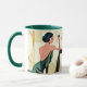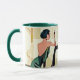 Tasse à café dans une élégante dame Art Déco / jazz en vert jade, tenant un verre, dans un style art moderne et semi-abstrait
