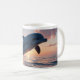 Bébé dauphin sautant dans la mer réfléchi dans le ciel couché de soleil