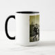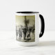 L'image historique des soldats fatigués de la Première Guerre mondiale qui marchent à côté de l'image d'une jeune fille innocente tenant un ours en peluche a été fusionnée pour former un message hantant et pertinent. Imprimé sur une tasse de 15oz.