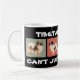 Customisez cette tasse d'espagne tibétaine avec votre propre nom ou tout ce que vous voulez. 4 beaux Tibbies qui se démarquent sur un arrière - plan noir.