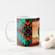 C'est un "One of a Kind" unique Mug de café Kokopelli Sud-Ouest! Il comprend un Kokopelli jouant la Flûte et dansant sous un coucher de soleil du désert...Entouré d'une frontière sud-ouest en Turquoise, Orange & Noir!